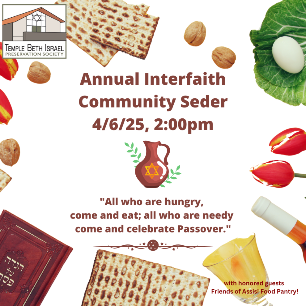 Temple Beth Israel annual Interfaith Passover Seder with honored guests Friends of Assisi Food Pantry!