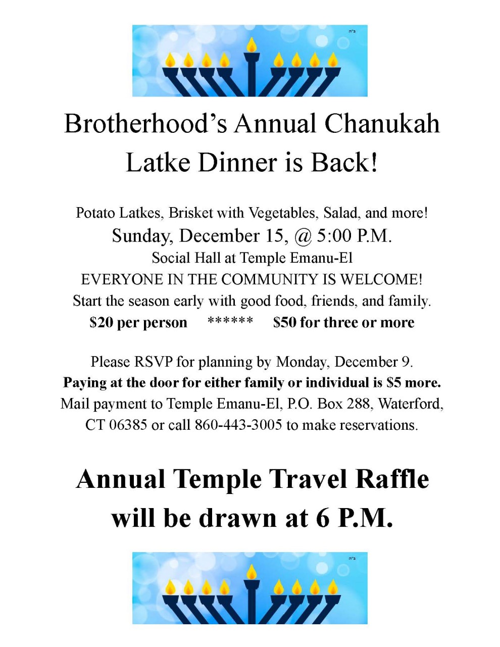 Temple Emanu-El Brotherhood's Annual Chanukah Latke Dinner.