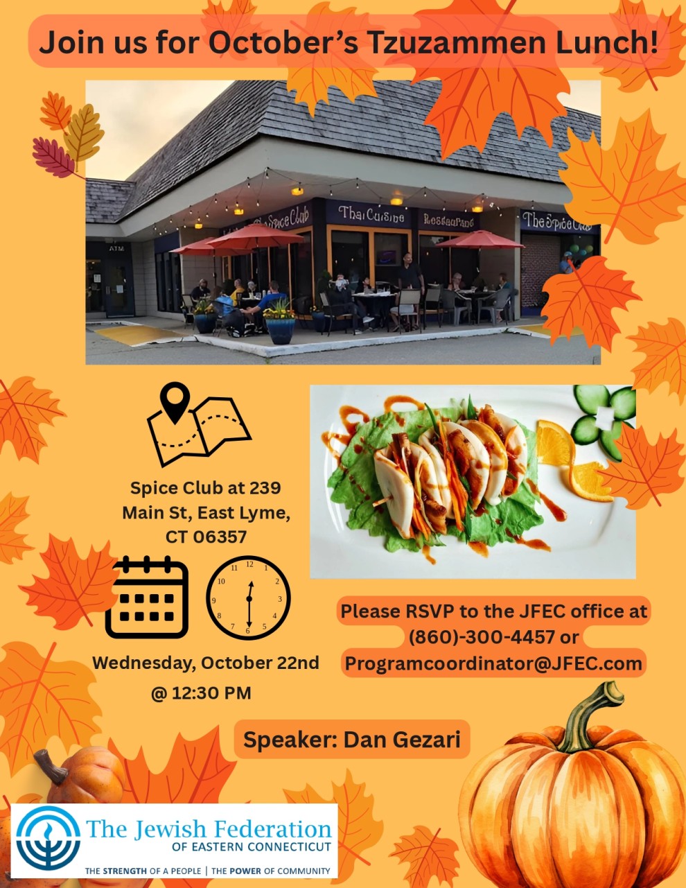 JFEC will have a monthly BYOT (bring your own transportation) & BYOM (bring your own money) lunch. Every 3rd Wednesday of the month at 1:00 p.m., we will meet at a different venue in the area for eating, schmoozing, and peer learning. Please join us for some together time.