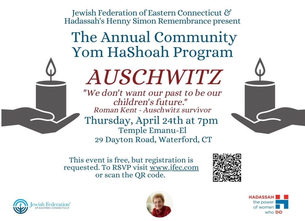 Everyone is invited to attend our Community Yom HaShoah program in person on Thursday, April 24 at 7 p.m. at Temple Emanu-El in Waterford.